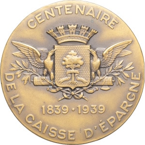 FRANCE - FRANCE MÉDAILLES - Caisses d’épargne. Médaille, centenaire de la Caisse d’épargne de Vienne 1939.…