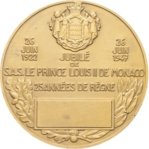 MONACO - MONACO MÉDAILLES - Souverains européens. MONACO. Médaille, 25 ans de règne de Louis II, par P. Turin …