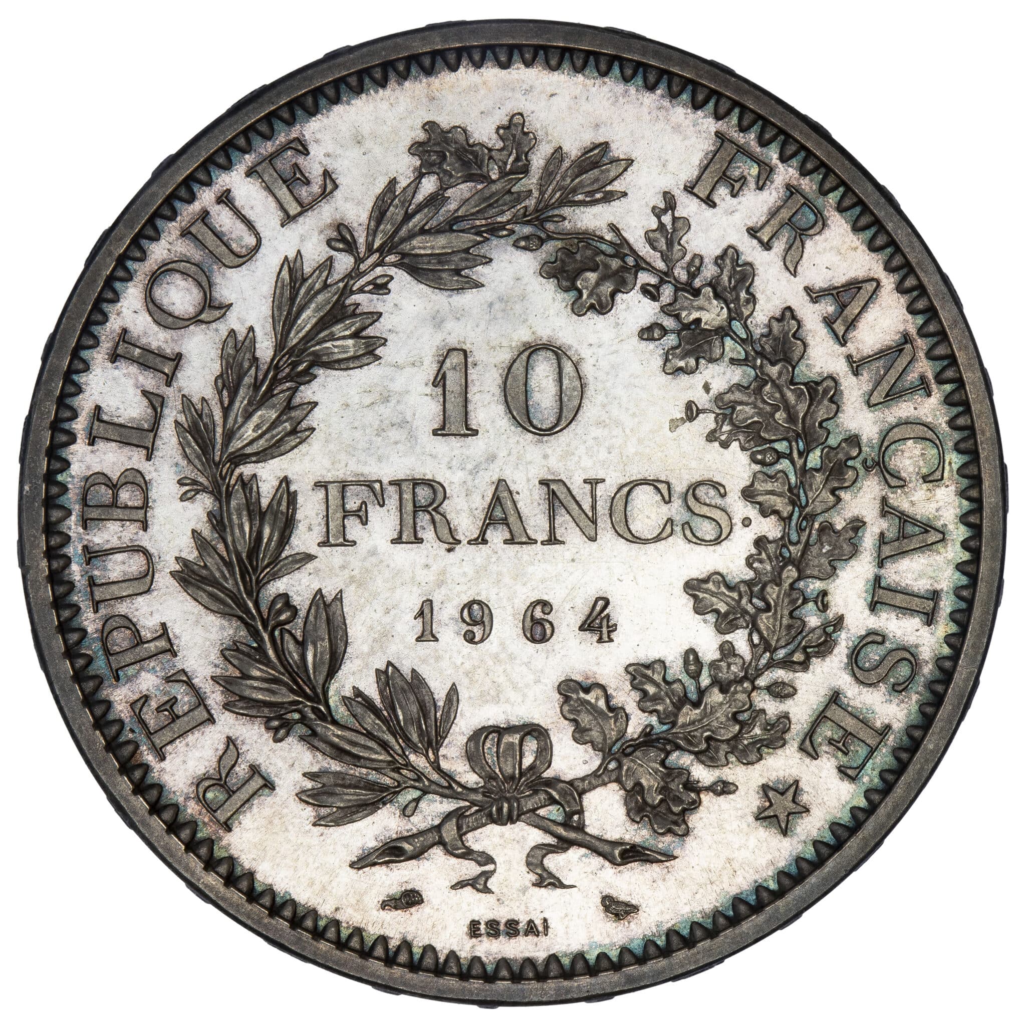 FRANCE Ve République (1958 à nos jours). Essai de 10 francs Hercule 1964, Paris.…
