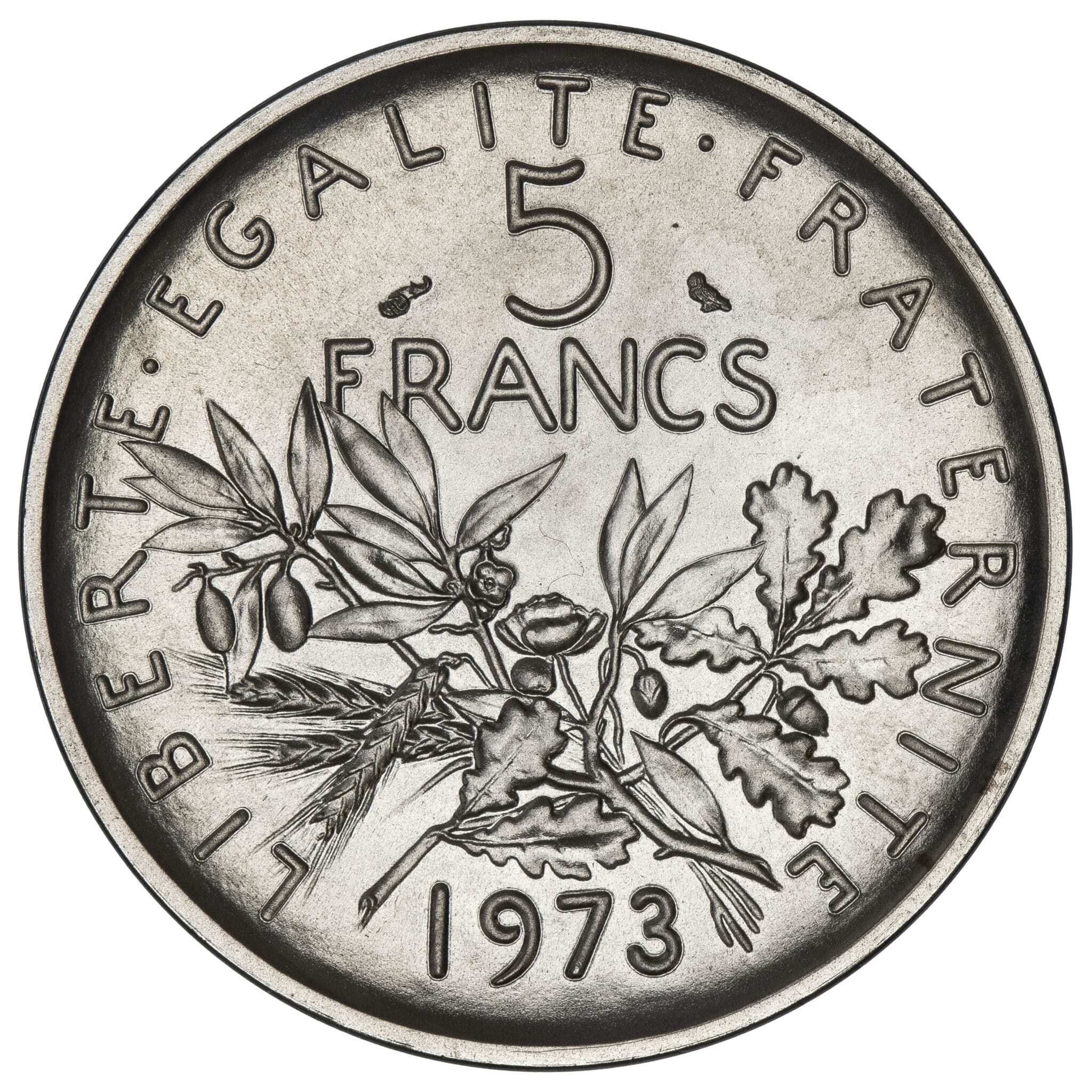 FRANCE Ve République (1958 à nos jours). Piéfort de 5 francs Semeuse 1973, Paris.…