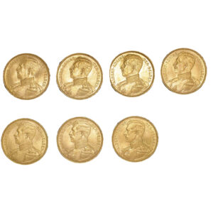 BELGIQUE Albert Ier (1909-1934). Lot de 7 x 20 francs or, légende flamande, tranche A 1914, Bruxelles.…