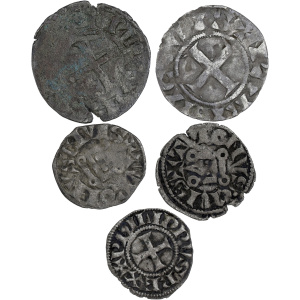 FRANCE / CAPÉTIENS - FRANCE / ROYAL Philippe IV, dit Philippe le Bel (1285-1314). Lot de 5 monnaies : denier t…