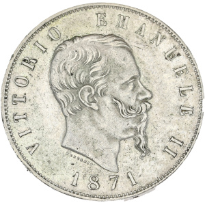 ITALIE - ITALY Victor-Emmanuel II (1861-1878). 5 lire 1871, R, Rome.