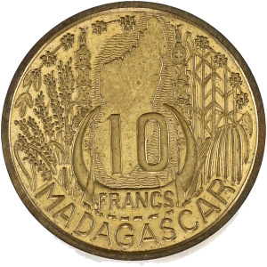 MADAGASCAR République. Essai-piéfort de 10 francs 1953, Paris.