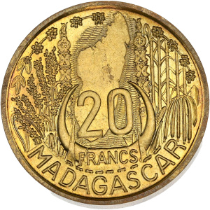 MADAGASCAR République. Essai-piéfort de 20 francs 1953, Paris.