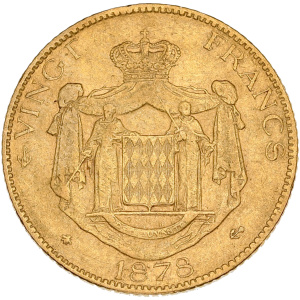 MONACO Charles III (1853-1889). 20 (vingt) francs 1878, A, Paris.
