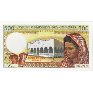COMORES - COMOROS Lot (2) - 500 francs W.1 et 1000 francs A.1 petit numéro ND (1976).…