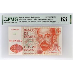 ESPAGNE - SPAIN 2000 pesetas SPECIMEN 22 juillet 1980.