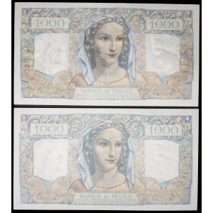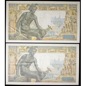 FRANCE - FRANCE Lot (2) - 1000 francs type “Déesse Déméter” 28-10-1943 et 18-11-1943.…
