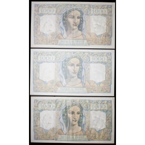 FRANCE - FRANCE Lot (3) - 1000 francs type “Minerve et Hercule” 17-2-1949 au 2-3-1950.…
