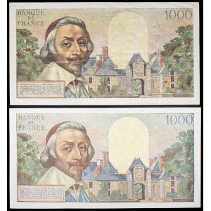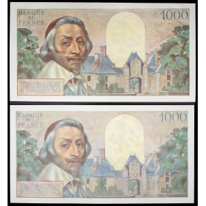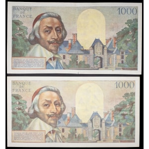 FRANCE - FRANCE Lot (2) - 1000 francs type “Richelieu” 6-5-1954 et 1-7-1954.
