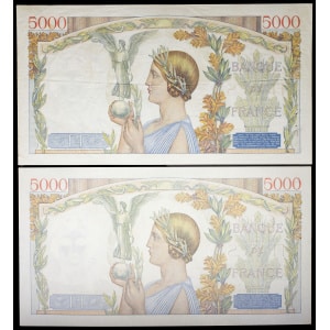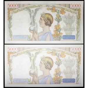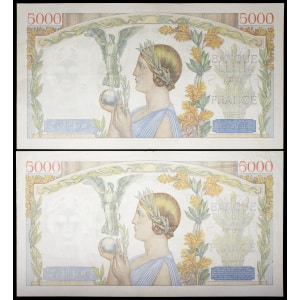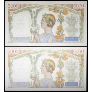 FRANCE - FRANCE Lot (2) - 5000 francs type “Victoire” impression à plat 19-12-1940 et 26-12-1940.…