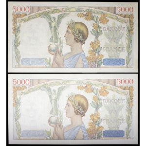 FRANCE - FRANCE Lot (2) - 5000 francs type “Victoire” impression à plat 9-10-1941 et 5-3-1942.…