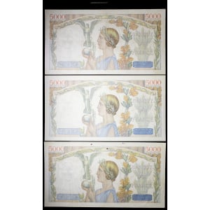 FRANCE - FRANCE Lot (3) - 5000 francs type “Victoire” impression à plat 19-3-1942 au 9-7-1942.…