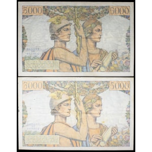 FRANCE - FRANCE Lot (2) - 5000 francs type “Terre et Mer” 1-3-1956 et 6-12-1956.…