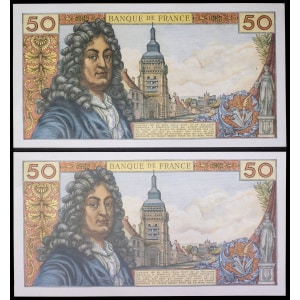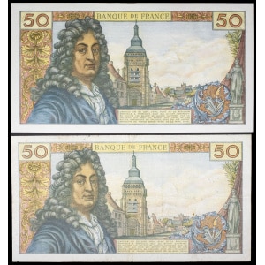 FRANCE - FRANCE Lot (2) - 50 francs type “Jean Racine” 3-10-1974.