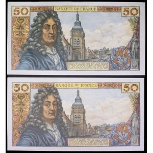 FRANCE - FRANCE Lot (2) - 50 francs type “Jean Racine” 2-10-1975.