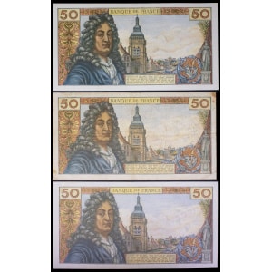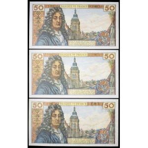 FRANCE - FRANCE Lot (3) - 50 francs type “Jean Racine” 6-3-1975.