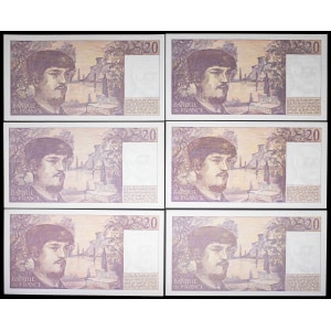 FRANCE - FRANCE Lot (6) - 20 francs type “Claude Debussy” 1980.