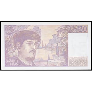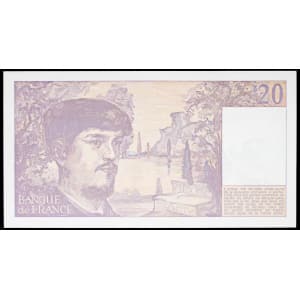 FRANCE - FRANCE 20 francs type “Claude Debussy” FAUTÉ / ERROR sans filigrane, avec manque d’impression des cou…