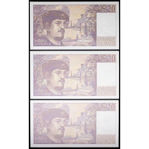FRANCE - FRANCE Lot (3) - 20 francs type “Claude Debussy” 1987.