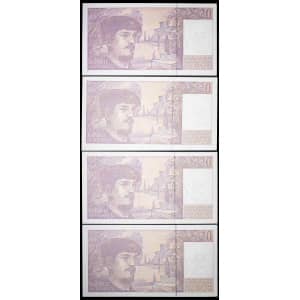 FRANCE - FRANCE Lot (4) - 20 francs type “Claude Debussy” à fil de sécurité 1990.…