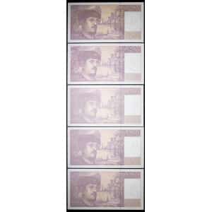 FRANCE - FRANCE Lot (5) - 20 francs type “Claude Debussy” à fil de sécurité 1993.…