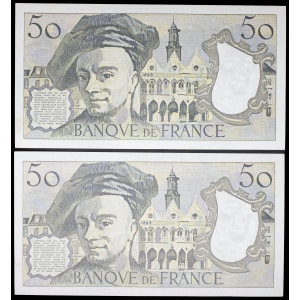 FRANCE - FRANCE Lot (2) - 50 francs type “Quentin de la Tour” (alphabet 17) avec numéros consécutifs 1979.…
