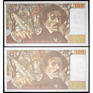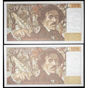 FRANCE - FRANCE Lot (2) - 100 francs type “Eugène Delacroix” (alphabets 2 et 3) 1978.…