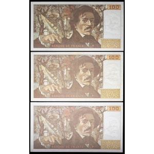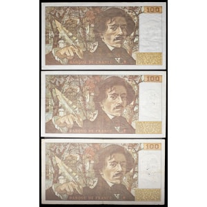 FRANCE - FRANCE Lot (3) - 100 francs type “Eugène Delacroix” (alphabets W.1 à W.3) 1978.…