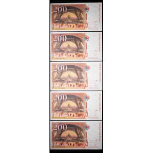 FRANCE - FRANCE Lot (5) - 200 francs type “Gustave Eiffel” (signatures B) 1996-1999.…