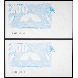 FRANCE - FRANCE Lot (2) - 200 francs type “Gustave Eiffel” FAUTÉ / ERROR sans couleurs ND (1996).…
