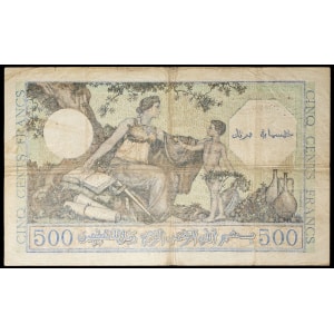 FRANCE - FRANCE 500 francs type “vert” - Banque de l’Algérie surchargé “TRÉSOR” 21-10-1943.…