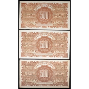 FRANCE - FRANCE Lot (3) - 500 francs type “Marianne” dit “Edmond Dulac” modifié, impression anglaise ND (1945)…