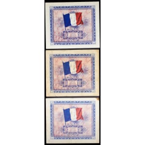 FRANCE - FRANCE Lot (3) - 2 francs type “Drapeau” (série complète) 1944.