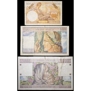 FRANCE - FRANCE Lot (3) - 100 et 1000 francs type “Mercure”, 5000 francs type “paysans” - Trésor Public ND (19…