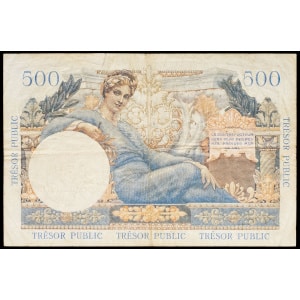 FRANCE - FRANCE 5 nouveaux francs surchargé sur 500 francs type “Mercure” - Trésor Public ND (1960).…