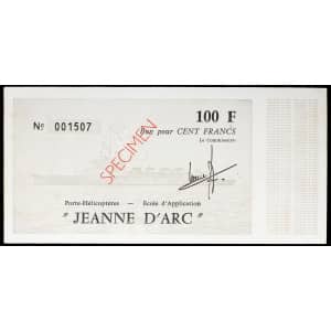 FRANCE - FRANCE 100 francs type “Porte-Hélicoptères - École d’Application Jeanne d’Arc” gris SPÉCIMEN ND (1979…