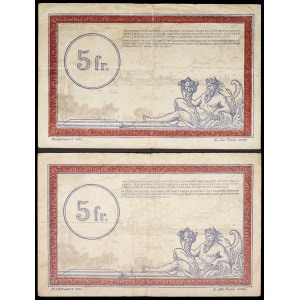 FRANCE - FRANCE Lot (2) - Bon de 5 francs - Régie des Chemins de Fer des Territoires Occupés ND (1923).…