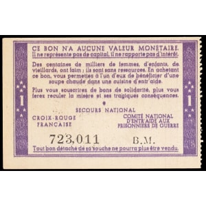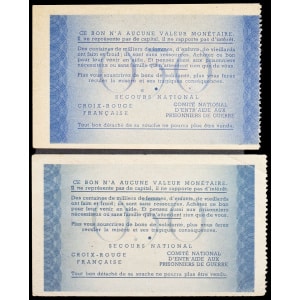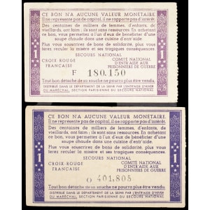 FRANCE - FRANCE Lot (2) - Bon de solidarité de 1 franc (var. “Comité national”, “Distribué dans le département…