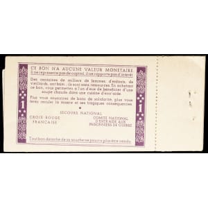 FRANCE - FRANCE Carnet de 10 bons de solidarité de 1 franc (var. “Comité national”) ND (1941).…