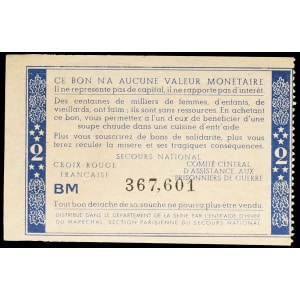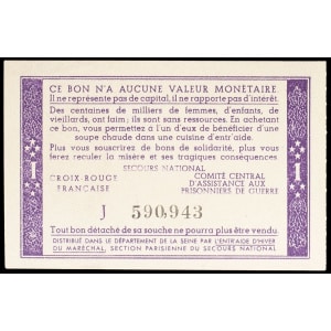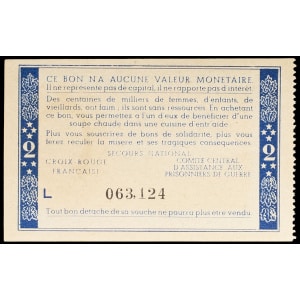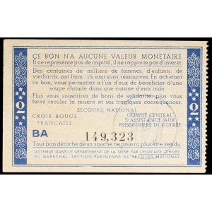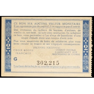 FRANCE - FRANCE Bon de solidarité de 2 francs (var. “Comité central”, “Distribué dans le département...”) surc…