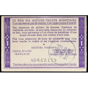 FRANCE - FRANCE Bon de solidarité de 1 franc (var. “Comité central”, “Distribué dans le département...”) ND (1…
