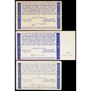FRANCE - FRANCE Lot (3) - Bon de solidarité de 2 francs (var. “Comité national”) ND (1941).…