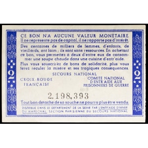 FRANCE - FRANCE Bon de solidarité de 2 francs (var. “Comité central”, “Distribué dans le département...”) ND (…