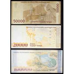 ARMÉNIE - ARMENIA Lot (3) - 20 000, 50 000 et 100 000 dram 2009 à 2018.