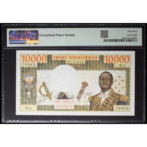 CENTRAFRIQUE - CENTRAL AFRICAN REPUBLIC 10 000 francs avec le portrait de l’empereur Bokassa en tenue de maréc…