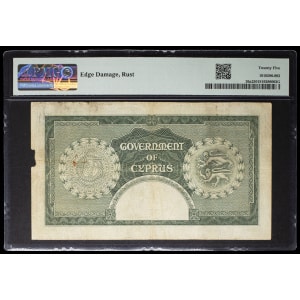 CHYPRE - CYPRUS 5 pounds avec le portrait de la reine Élisabeth II 1er juin 1955.…