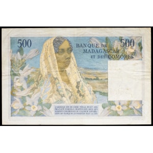 COMORES - COMOROS 500 francs type “Comorien” surchargé “COMORES” ND (1963).…