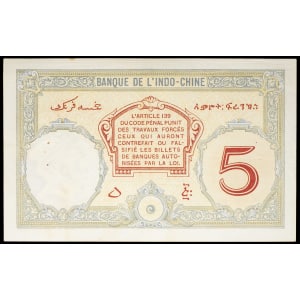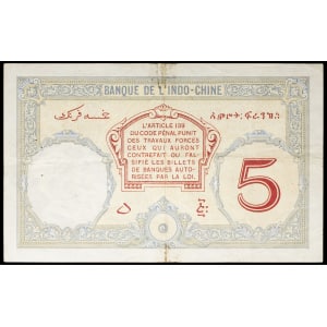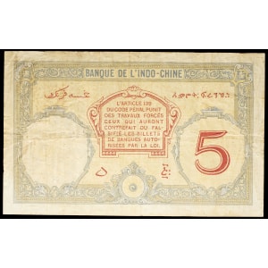 DJIBOUTI - DJIBOUTI 5 francs type “Walhain” - Banque de l’Indo-Chine ND (1927-1932).…